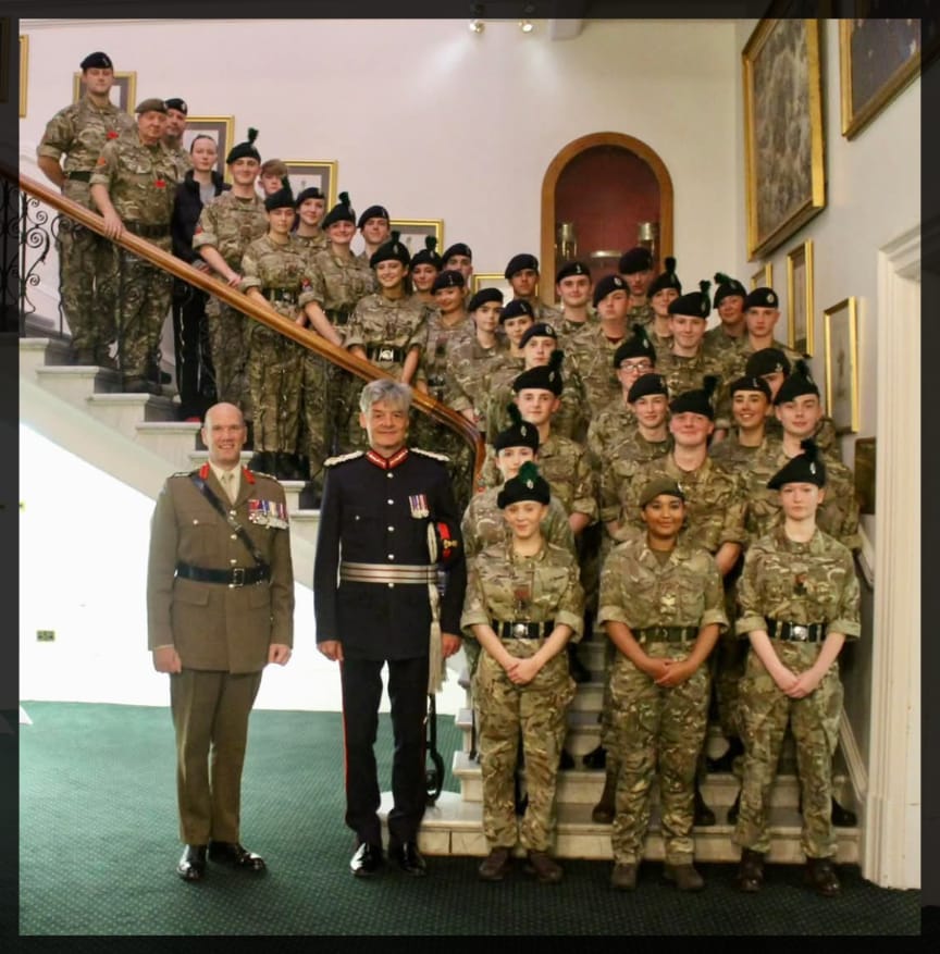 The Lord-Lieutenant Gawn Rowan Hamilton attended the annual awards ceremony of the 2nd (NI) Battalion Army Cadet Force. This event recognises the achievements of Army Cadets and Adult Volunteers. He is pictured with award winners and Brigadier Piers Ashfield, DSO, MBE, Commander, 38 (Irish) Brigade.