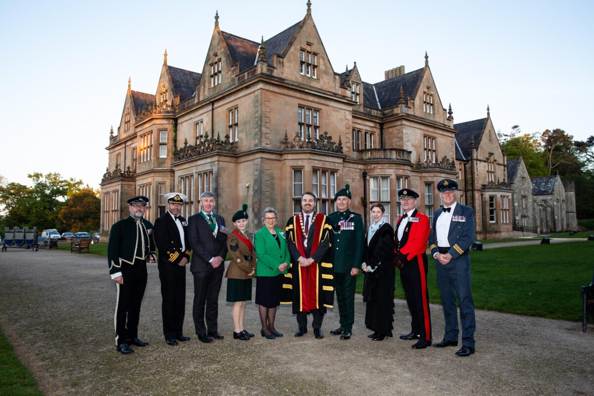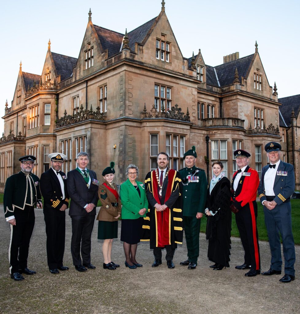The Vice Lord-Lieutenant, Catherine Champion, attended and is pictured here with the Lord-Lieutenant’s Cadet Company Sergeant Major Zara Dowell, the Mayor of Ards and North Down Alistair Cathcart, CEO of Ards and North Down Susie McCullough, High Sheriff Pete Leckey, Band Master Richard Douglas, and other VIPs.