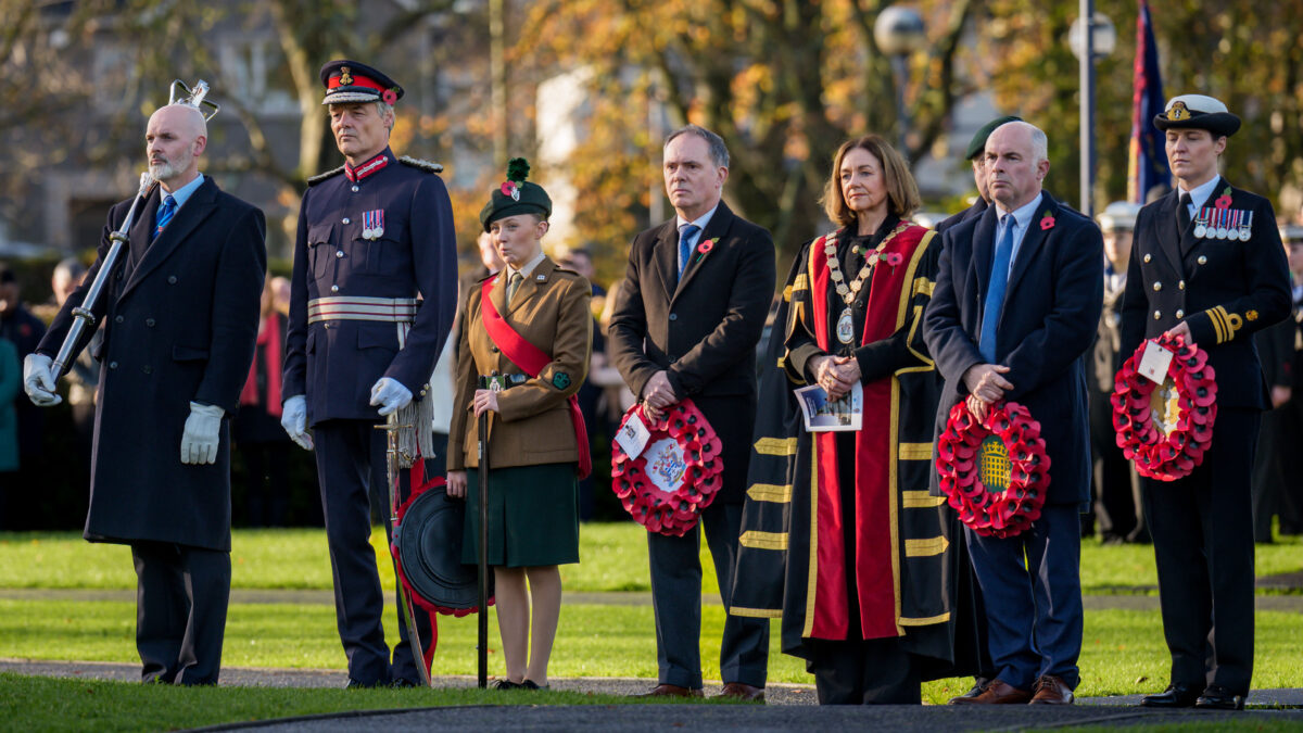 The Lord-Lieutenant, Gawn Rowan Hamilton, attended the Remembrance Service in Bangor, Co Down, which was also attended by the Mayor of Ards and North Down, Gillian McCollum. He was accompanied by the Lord-Lieutenant’s Cadet, Company Sergeant Major Zara Dowell.